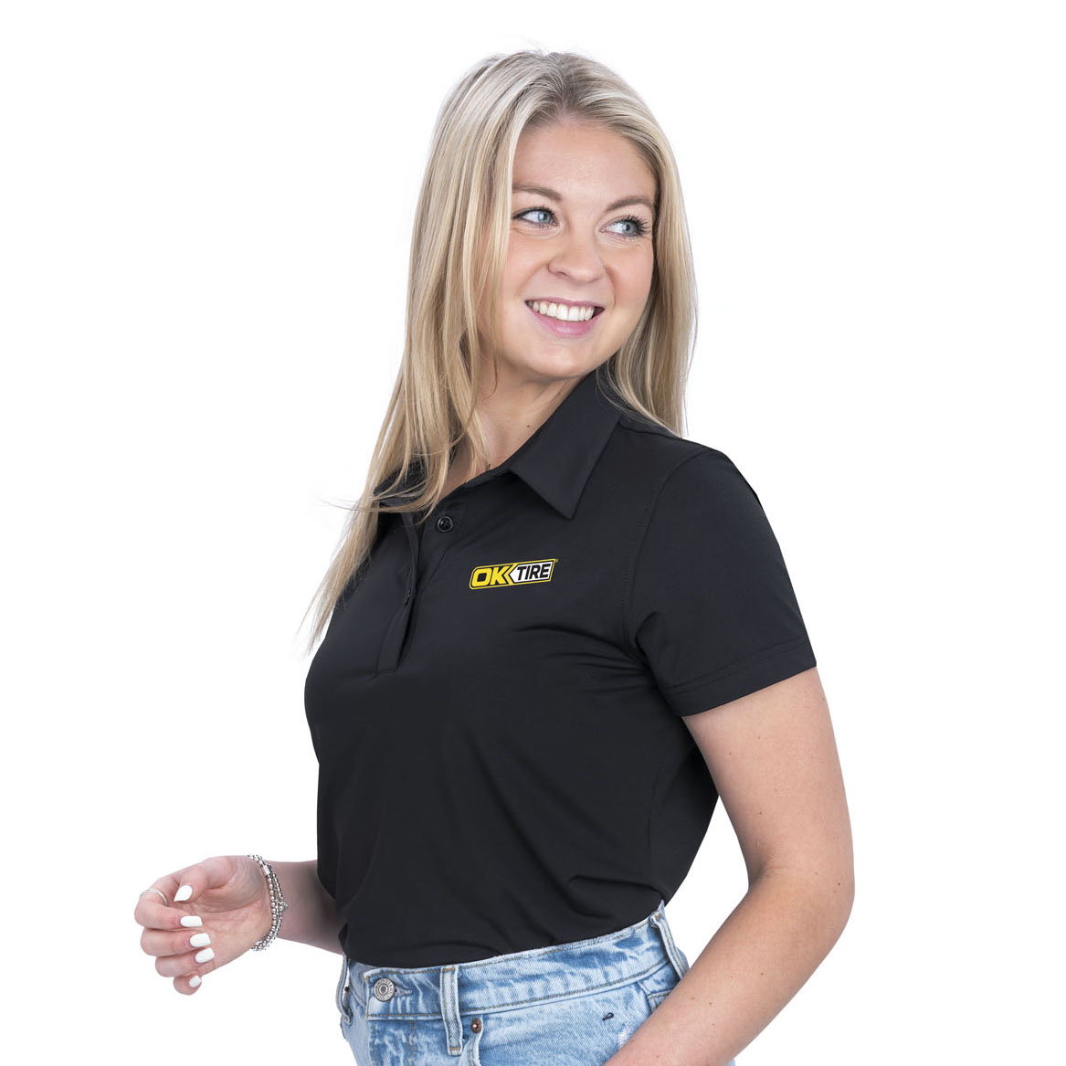 *90% Polyester/10% Elastane “cool-down” fabric *Custom produced, multifunctional fiber has rapid heat dissipation, instant cooling & air permeability *Self fabric collar *Interlock knit *Wick-away *Three button placket *Flattering fit.jpg74.95